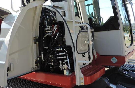 The TB2150R is the largest excavator in the Takeuchi line up. It features a fixed boom for greater stability and allows the operator to carry heavier loads. The TB2150R comes standard with a mono-boom that provides best in class digging depth (2-piece boom is optional).