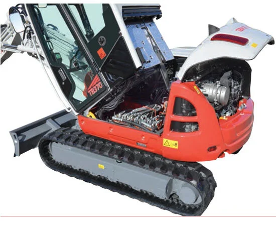TB370 is a highly versatile wheeled excavator that has on-road capabilities coupled with powerful excavating performance. Multiple hydraulic circuits and attachment presets enhance versatility, and the locking differentials allow the machine to perform in demanding applications.